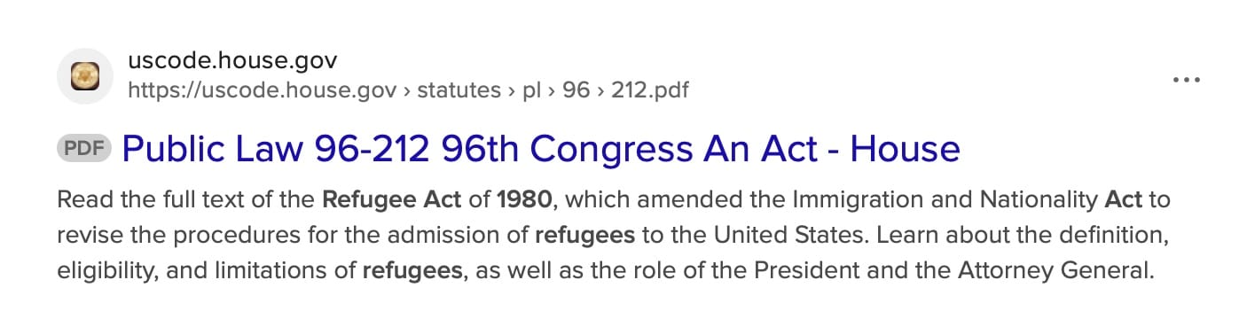 Side note: US House of Representatives has removed the 1980 US Refugee Act from their government website.