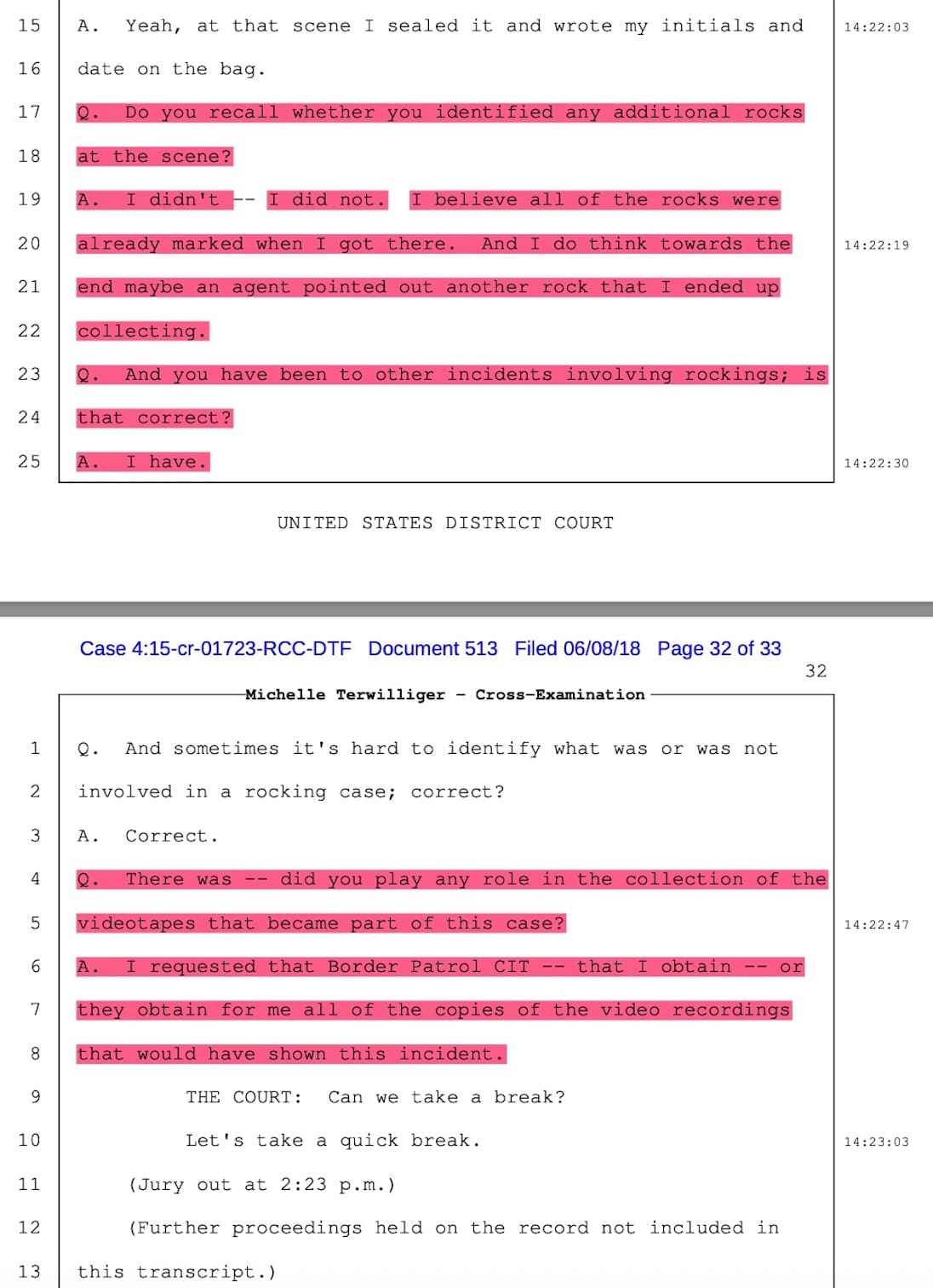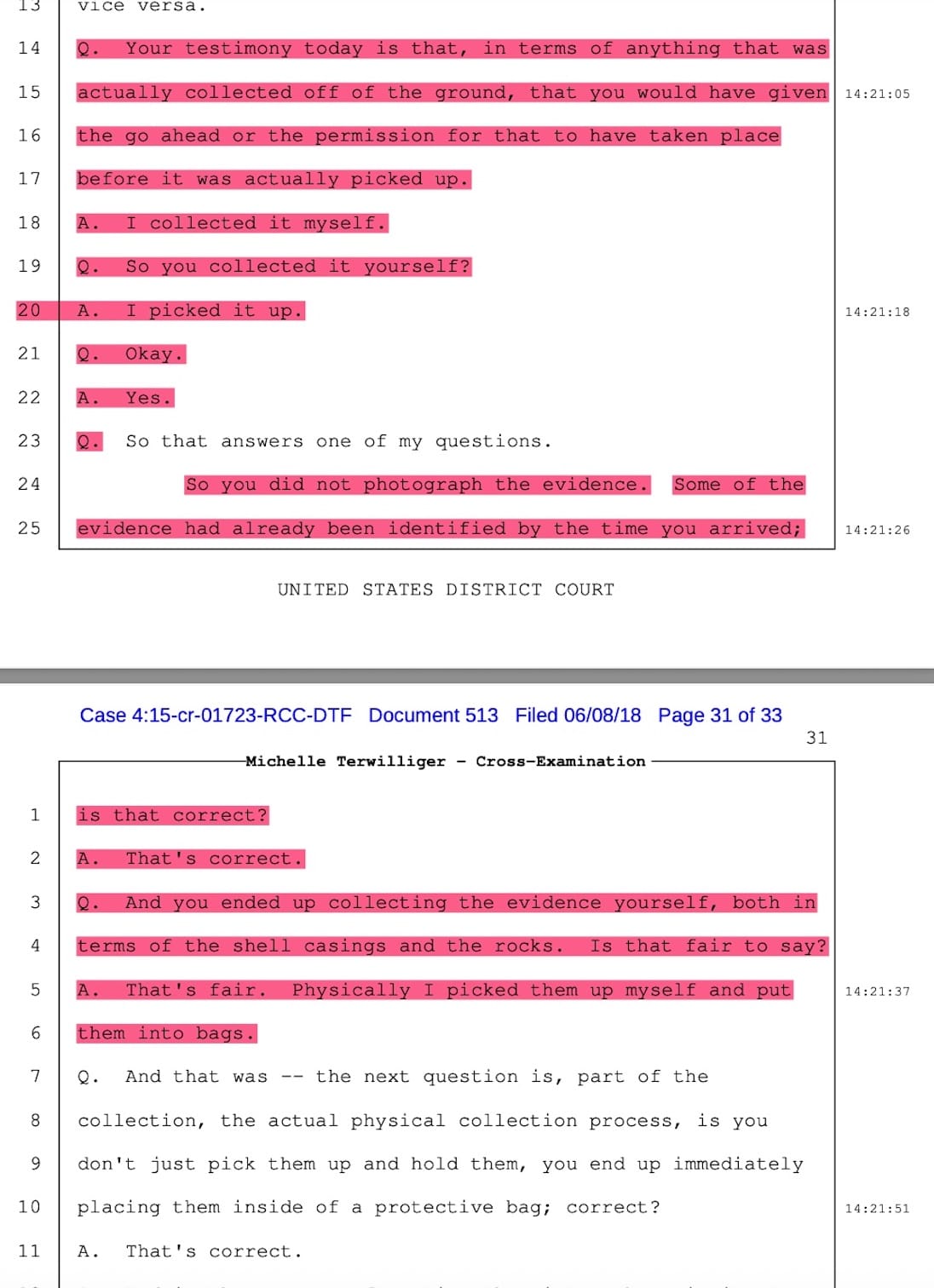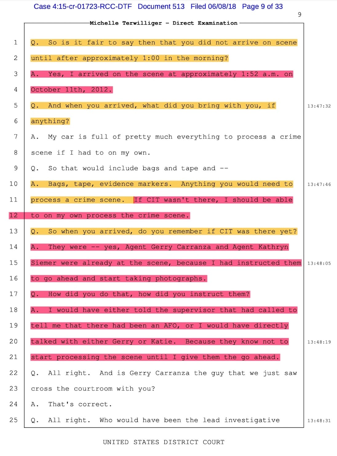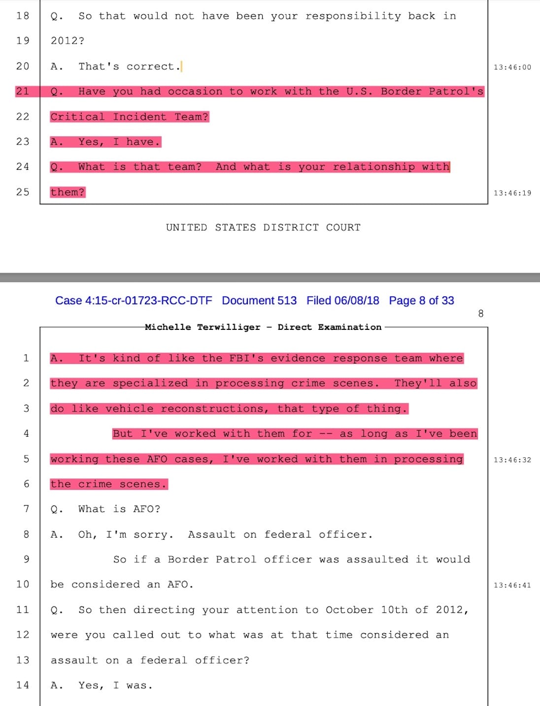 Terwilliger testified in court that she was in charge of identifying and collecting all evidence in the Jose Antonio case personally herself. Upon cross-examination, Agent Terwilliger had to admit she had not identified and collected all of the evidence but that the illegal and secret Border Patrol Critical Incident Team (CIT) of Tucson Sector had done most of the evidence identification and collection that night. She had misled the jury.