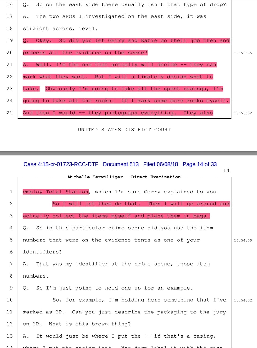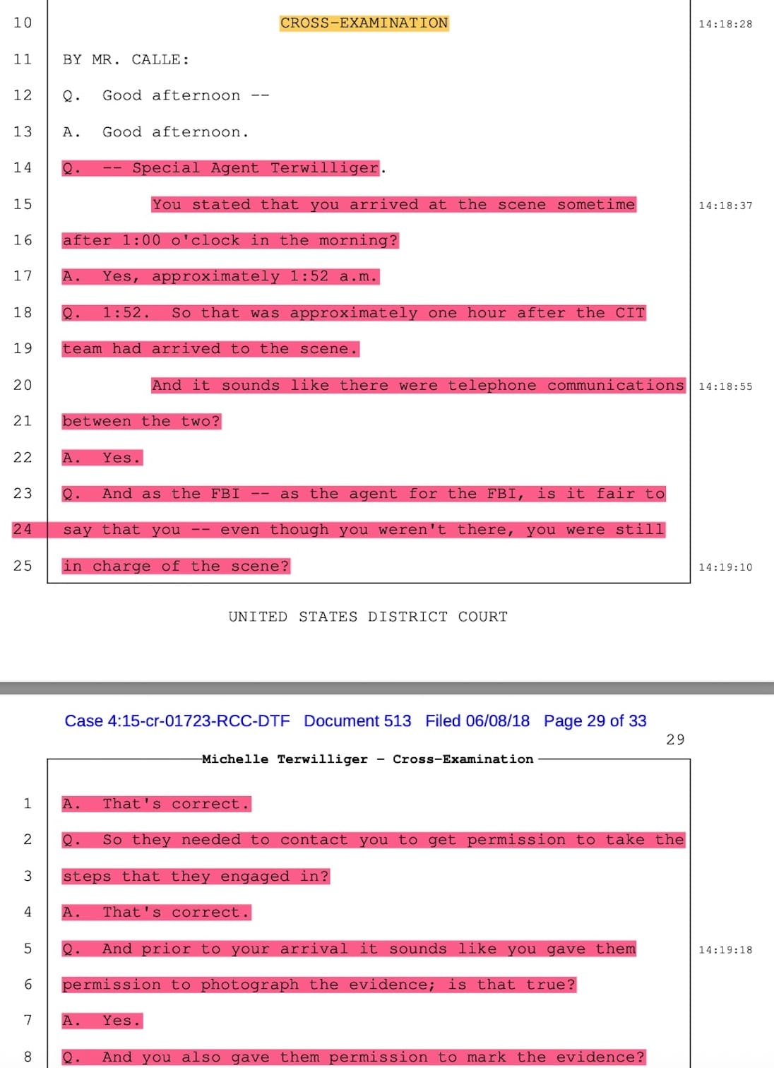 FBI Special Agent Michelle Terwilliger testimony.
